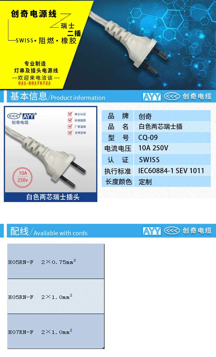 两芯瑞士插头
