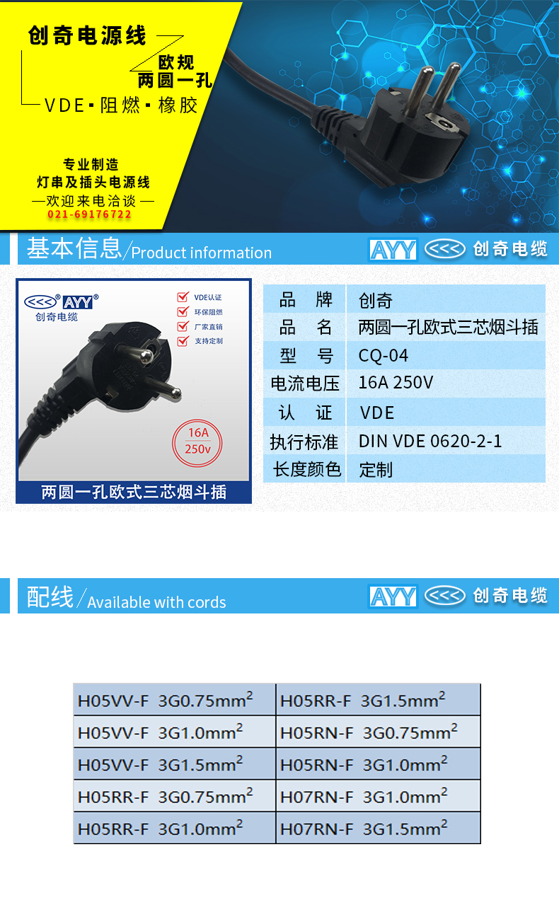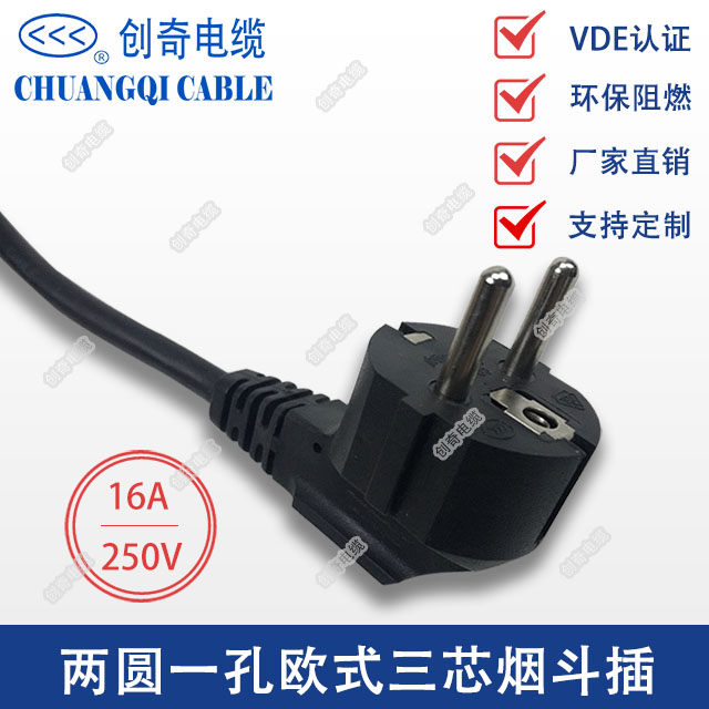 两圆一孔三芯欧规烟斗插头