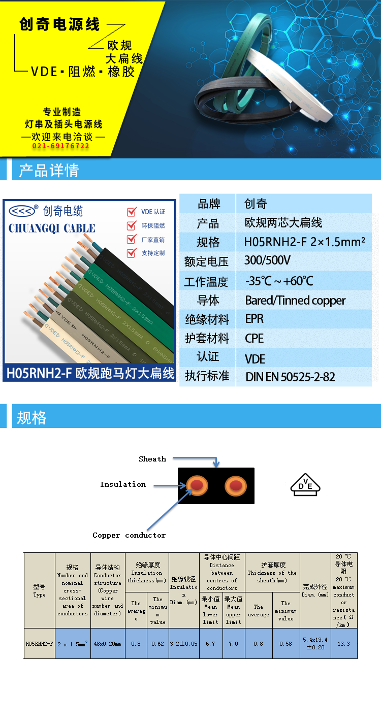 H05RNH2-F欧规橡胶大扁线