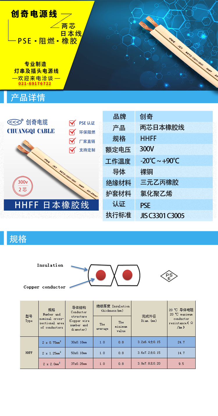 HHFF日本橡胶电缆日本标准