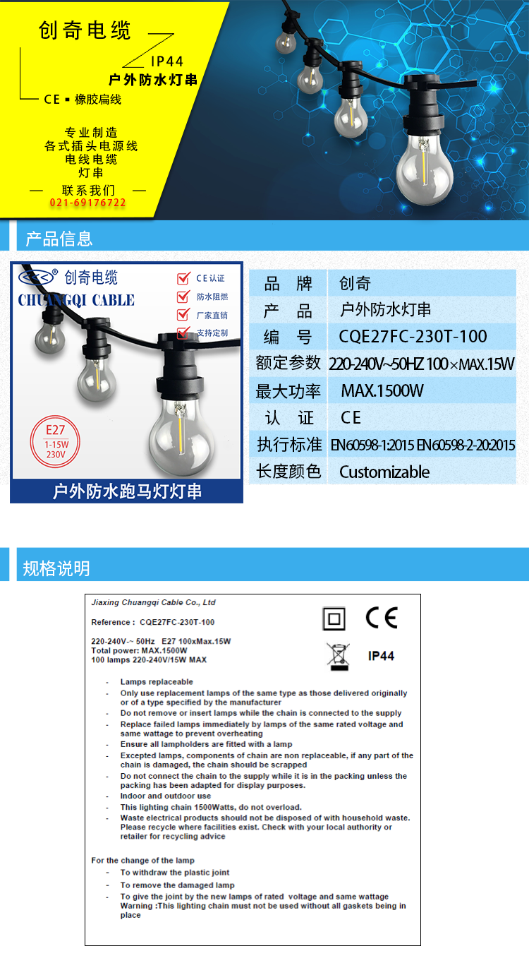 户外防水跑马灯灯串